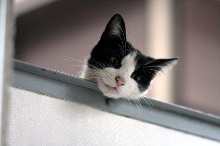 窓を開けてみると、こちらを見ている。それも隣の部屋のベランダから。
