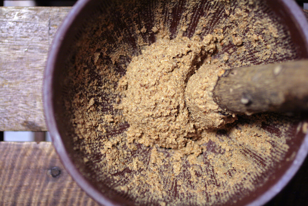 全体がねっとりしてきたら、少量の水を加え、練るようにしながらさらに根気よくあたる。