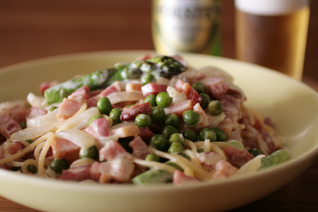 さて、ゴールデンウィーク初日の昼。午前中から食べるものが決まっていたのだ。グリーンピースのクリームパスタである。そういう気分だったのだ。