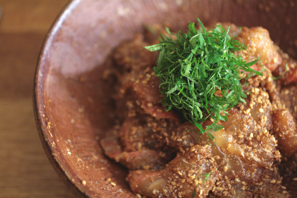鯛の胡麻醤油和え。
