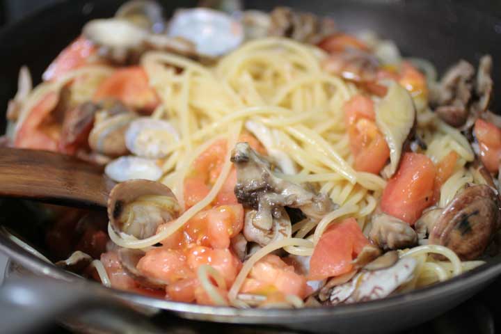 塩・胡椒で味を調える(あさりから出る塩分に差があるので、必ず味見をしてから塩を入れる。入れなくてもいいこともある)。