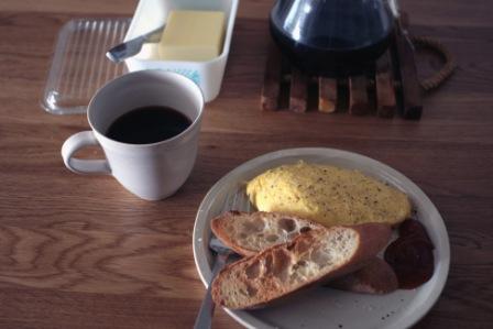 さて先日、友人からバゲットをいただいたので、トーストしてオムレツを作った。