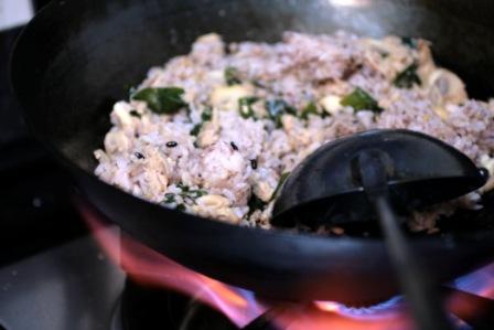 ごはんとタイムを入れてさらに炒める。塩、胡椒で味を調える。
