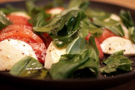 始めてこれをやった人は、カプレーゼ考案者なみにえらい。発想の妙を痛感するメニューだ。ヒントは餃子だろうか?