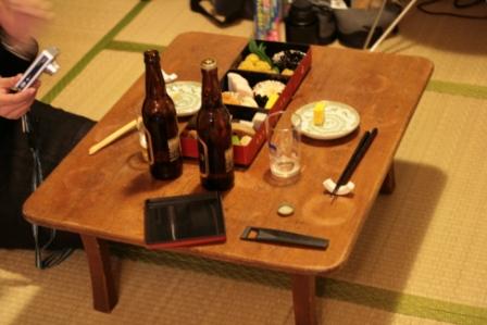 敢えて和室にちゃぶ台でやってみたら、貧乏夫婦の倹(つま)しい正月のようで涙ものであった。
