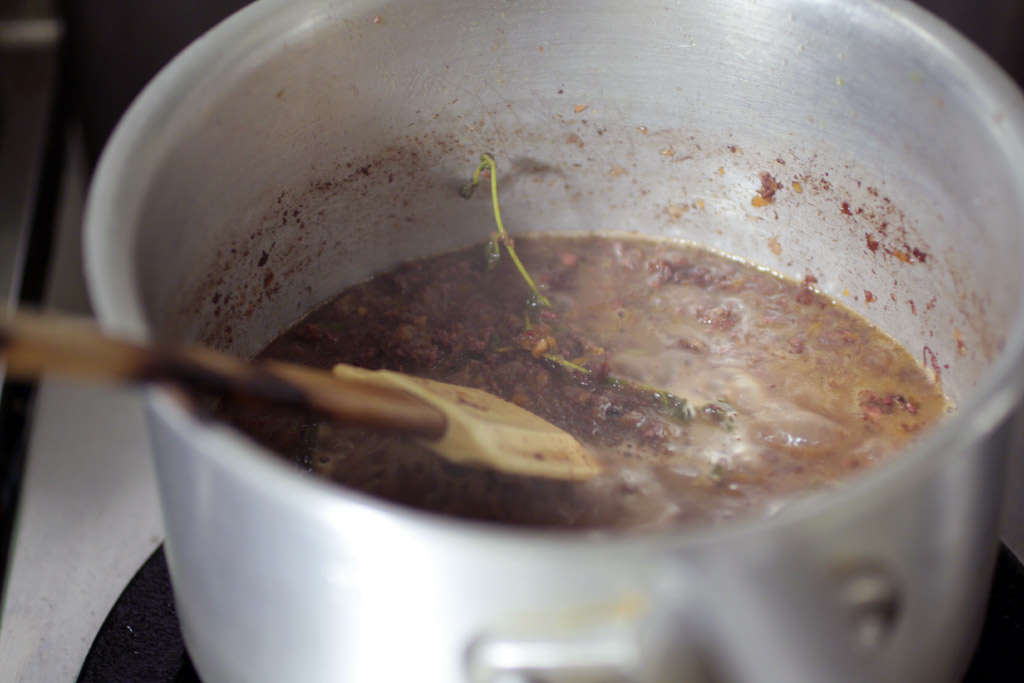 タイムの香りが利いたアンチョビ・ポテトだ。仕上げのバターは、なくてもおいしいけれども、あったらもっとおいしいのだ。