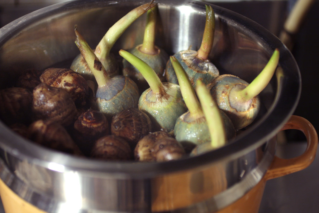何度も手にとって読み返す、『土を喰ふ日々』。くわいを見たらこれをやらないわけにはいかないのである。