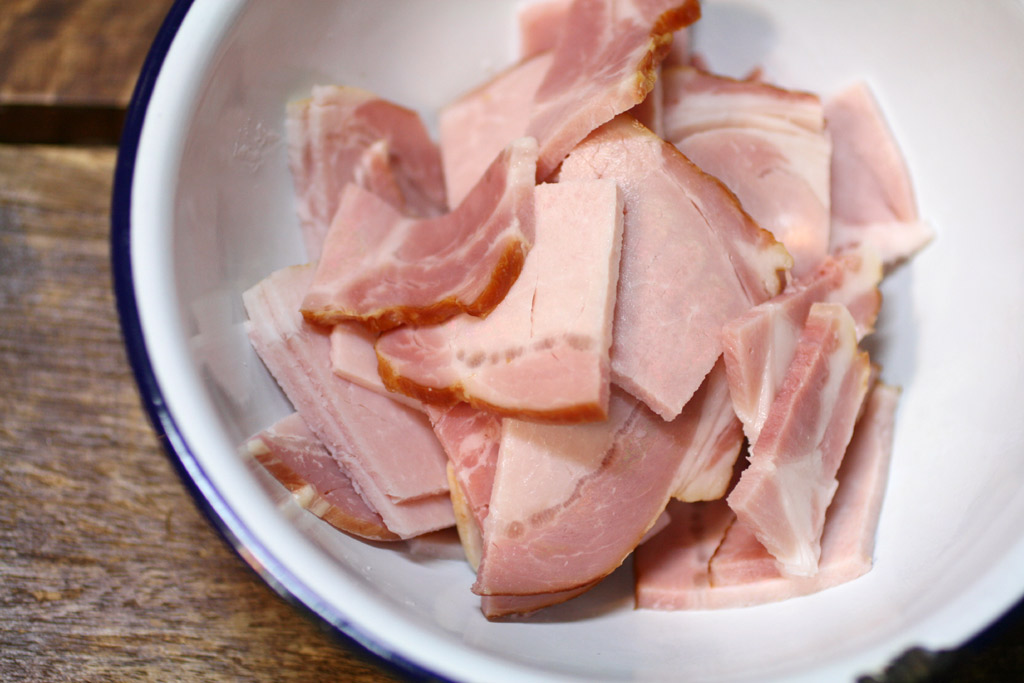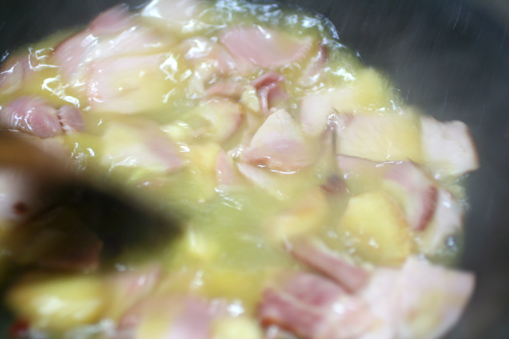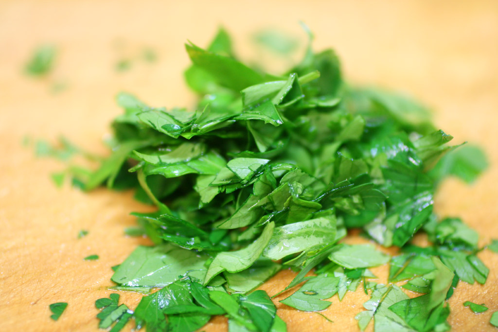 さて、先日のハムがまだ冷凍してあるので、この復活したイタリアンパセリを使ってパスタにする。