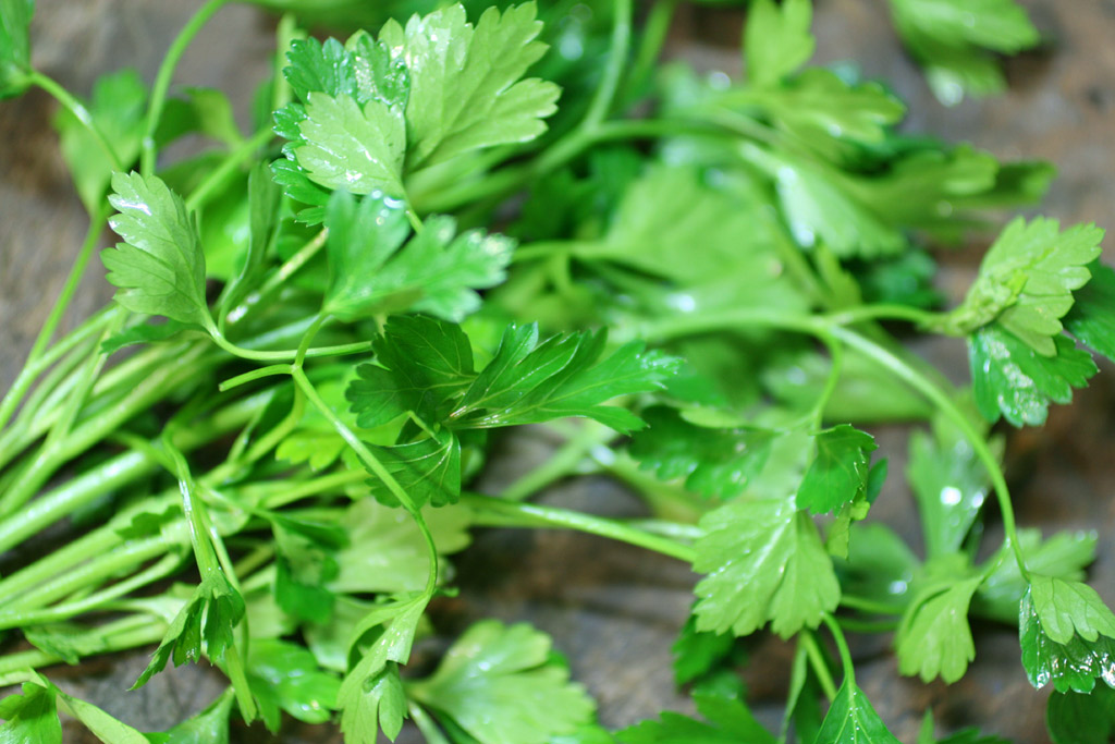 だから生き返るかもしれないと思って、お皿に氷水を入れてイタリアンパセリを横にしておいて上からラップをかけて一晩おいた。