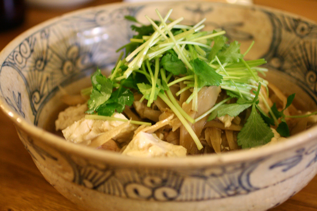 柚子胡椒をつけていただく。牛蒡の香りがおいしい鍋だ。