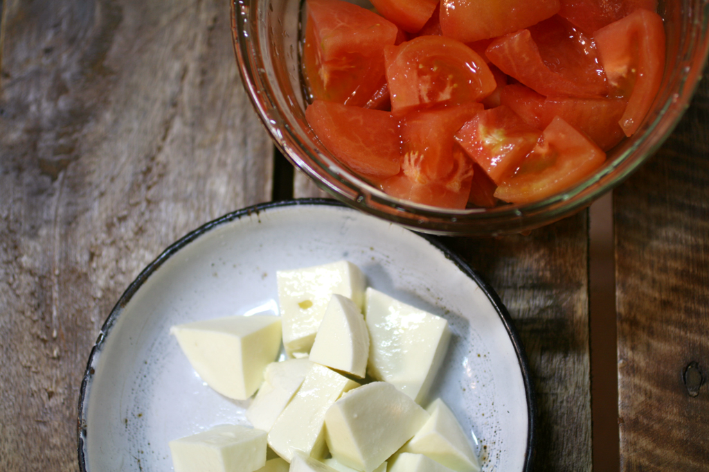 モッツァレラも同じくらいの大きさに刻んでおく。