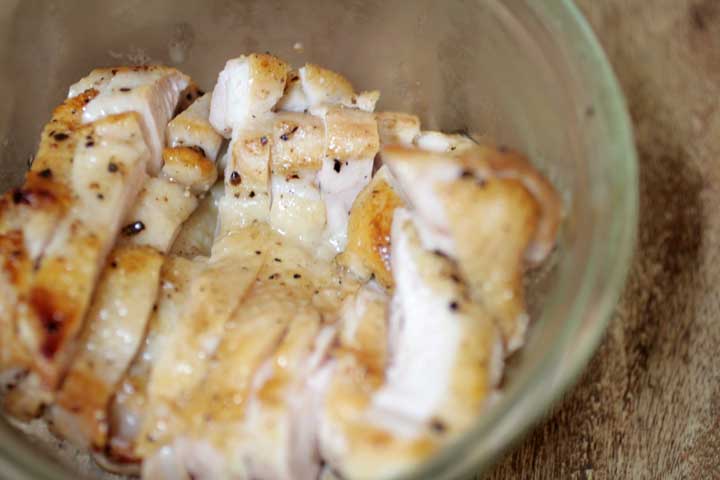 アーリオ・オーリオを作り、そこに取り出しておいた鶏肉を入れる。