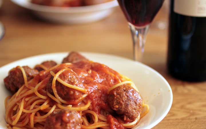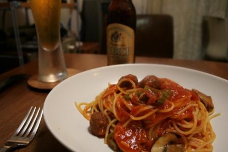 その後は赤ワインに変えて、ミートボールのパスタ。