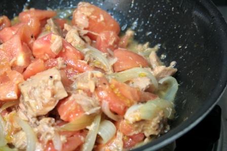 ソテーして、和風だれをかける。和風だれは、にんにく、たまねぎ、マッシュルームを炒めて、酒をふり、コンソメスープで煮て、醬油と胡椒で味を調える。冷蔵庫に保存してあった。