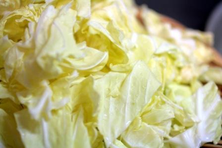 パスタの茹で時間が残り2,3分になったら、パスタ鍋にキャベツを入れ、一緒に茹でる。