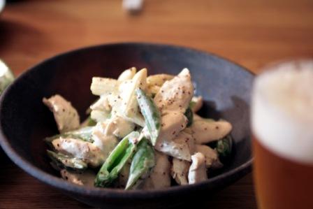 ささみとヤングコーンのマスタードマヨネーズ和え。