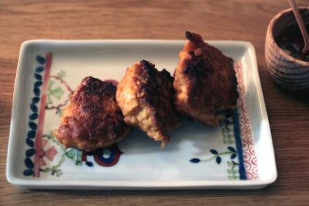 鶏ひき肉、たけのこのみじん切り、新しょうがのみじん切り、片栗粉、たまご、ナンプラーを入れてよく練る。それをフライパンで両面焼き付けた後、蓋をして蒸し焼きにする。