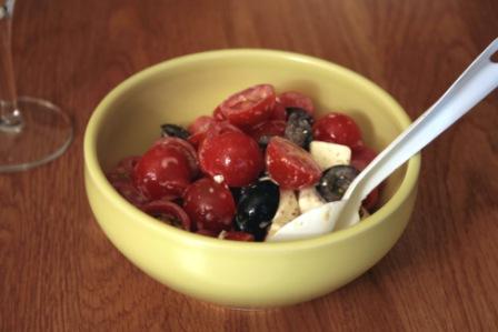 トマト、ブラックオリーブ、クリームチーズを和えたもの。