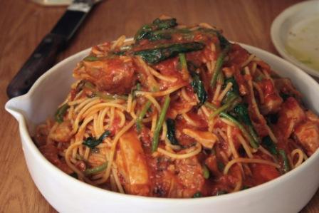 本当はペンネでやるつもりだったけれど、買い置きがなかったのでコンキリエにしたが、これがよかった。とてもおいしくできた。