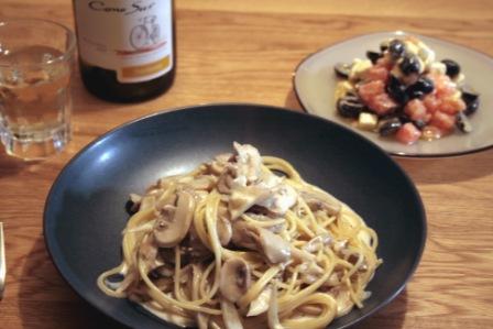何をつくろうかなと悩むことはなかった。冷蔵庫の中に先週買った生クリームがある。野菜室に舞茸とマッシュルームがある。