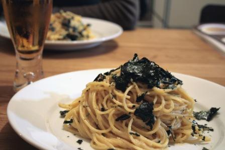 おいしいです。たらことバターをたっぷりと白ワインと醬油。