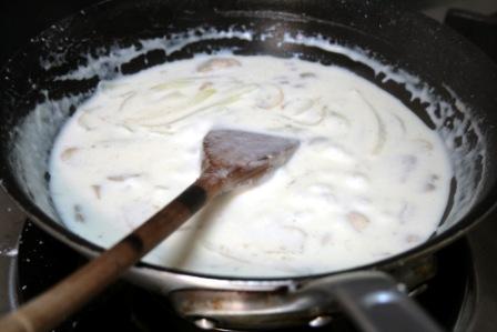 牛乳を入れて煮る。