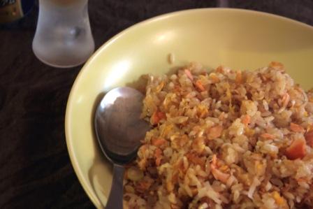 なんとなく1切れ98円の塩鮭を買って、なんとなく炒飯である。