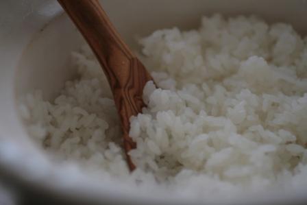梅の木の杓文字はもちろんきちんと湿らせてから使わないと、ごはんつぶはどんどんくっついていく。でもそんなのは湿らせてから使えばいいだけの話だ。