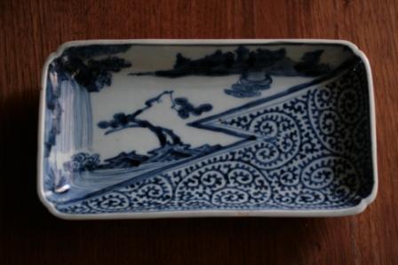 古伊万里、片変わり蛸唐草文様の長角皿。