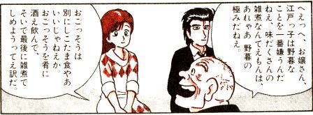 「江戸っ子は野暮なことを一番嫌うんだ ねえ、味だくさんの雑煮なんてえもんは、あれゃあ野暮の極みだねえ」