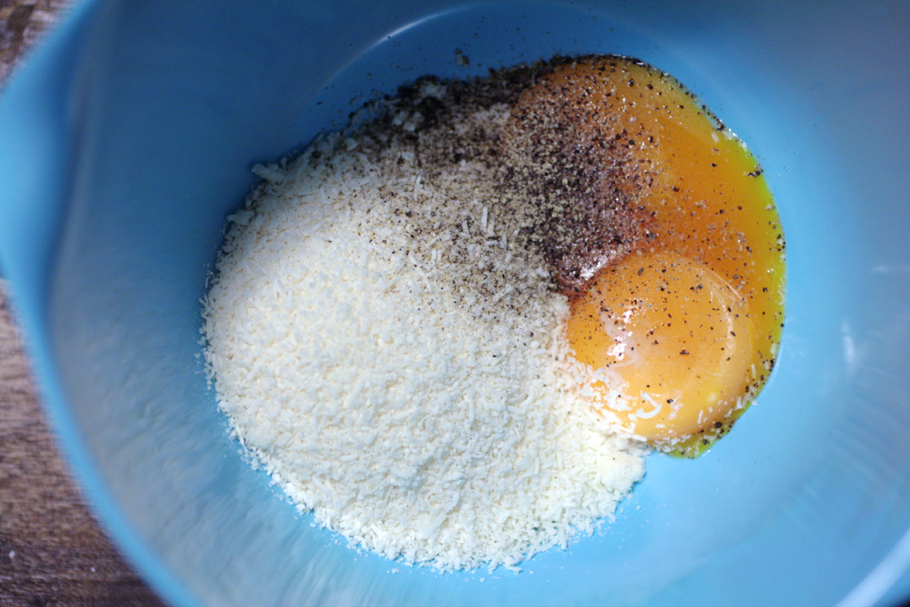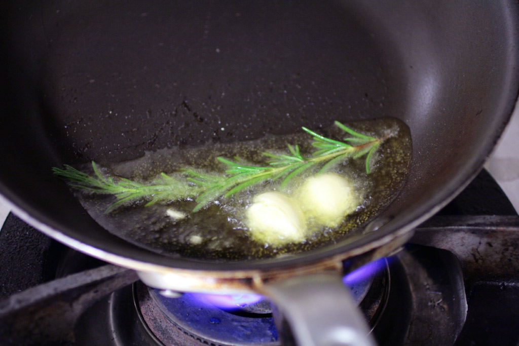 ドレッシングは、にんにくのみじん切りに白ワインビネガー、バルサミコ酢、塩、胡椒、オリーブオイル。