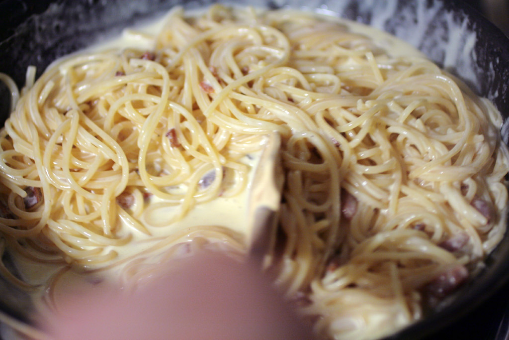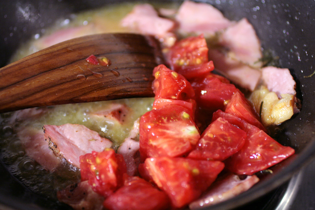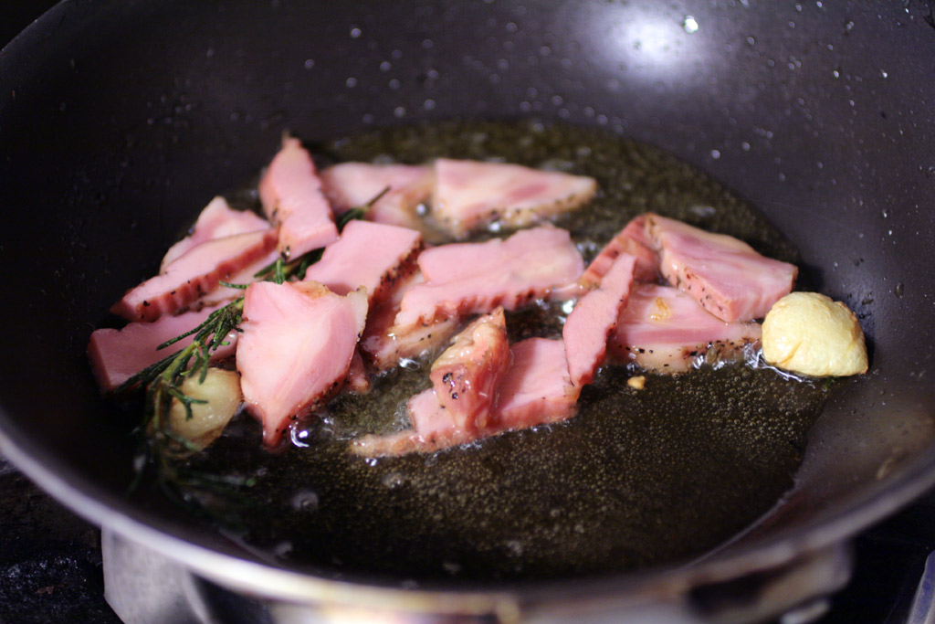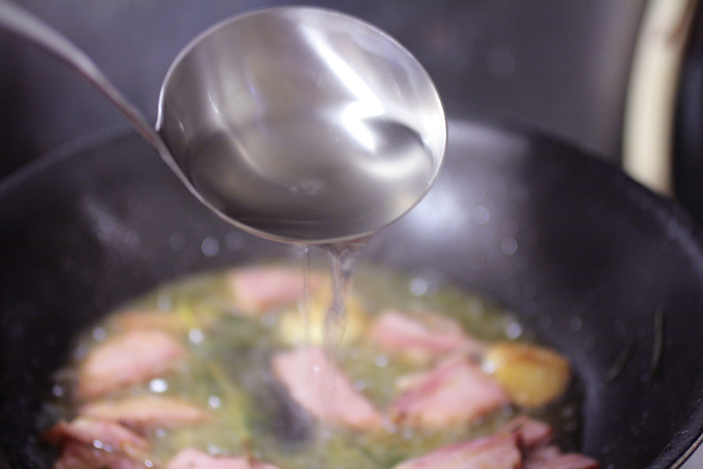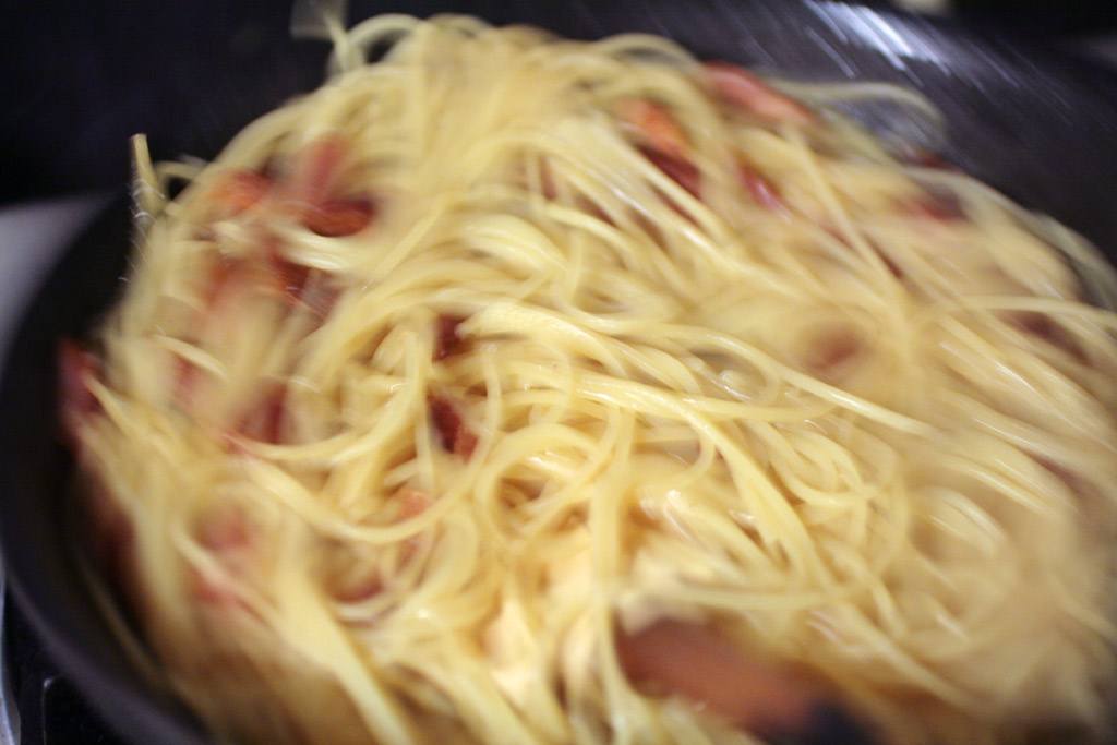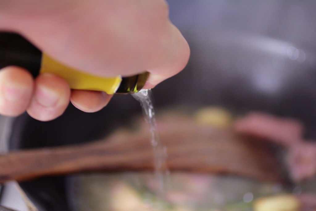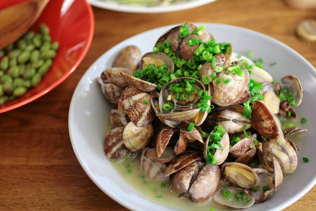 アーリオオーリオで軽く炒めたら、白ワインをドボドボと入れて、蓋をする。このときに、「暑っつー」みたいな感じで貝がぽこぽこ開いていくのがかわいい。