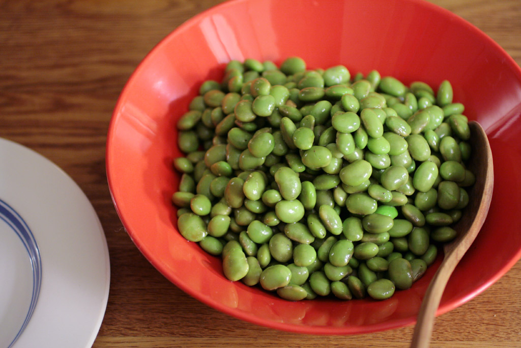 枝豆は、莢から出して、塩、胡椒、レモン、オリーブオイル。
