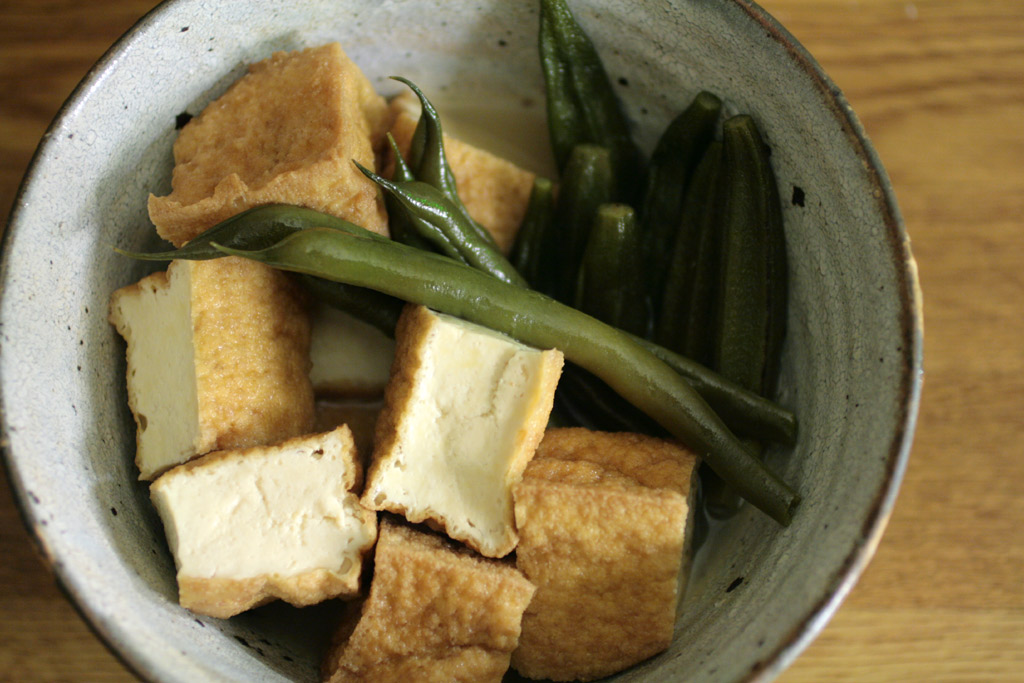 ほんとうは、オクラもいんげんも緑を鮮やかにするつもりだったのだけれど、煮たあとで鍋に入れっぱなしだったので火が通り過ぎた。