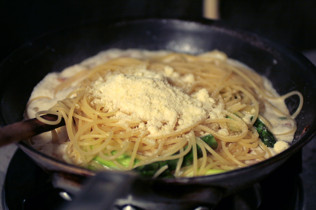 パルミジャーノ・レッジャーノのすりおろしも入れて、和えたら完成。