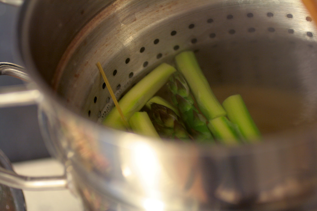 麺が茹で上がる3分くらい前に、パスタ鍋に入れる。