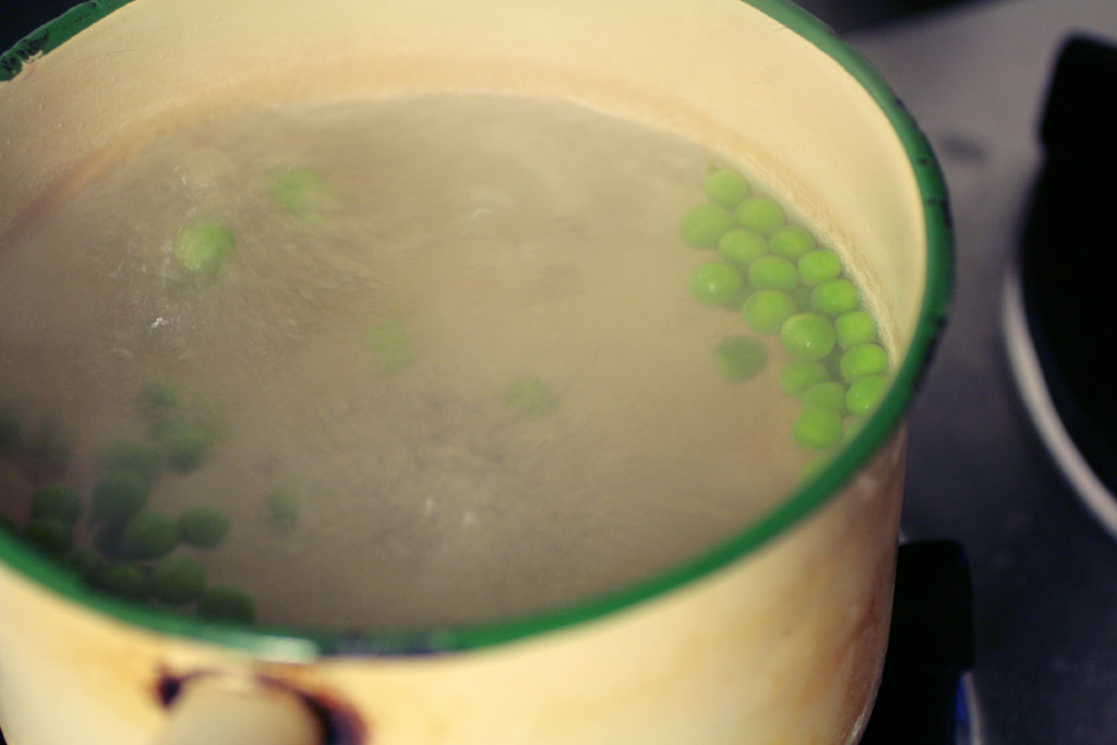 ―ピースを茹でる時に、豆がやわらかくなったといっても、すぐに笊にあげてしまってはいけません。
