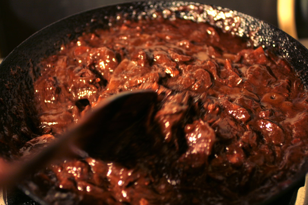 さて、余ったハンバーグソースは冷凍してもよかったのだが、冷凍庫もいっぱいなので、そのまま焼いた牛肉を足して、ハッシュドビーフにすることにしたのである。