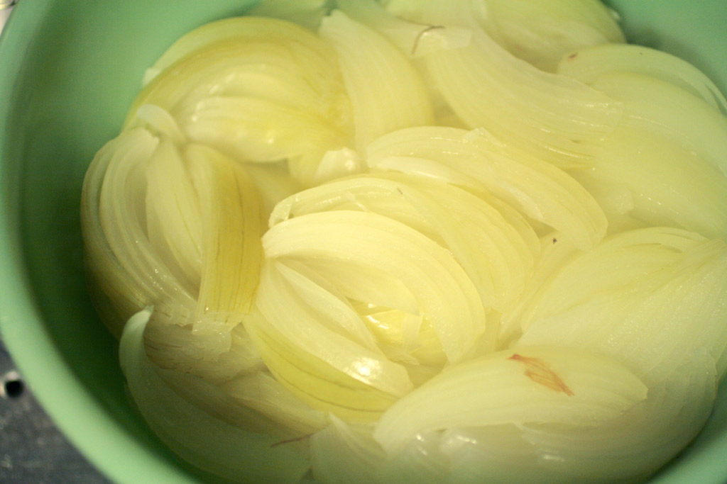 飴色になるまで炒めていくのであるが、時間短縮のために電子レンジで15分ほど加熱してから炒める。