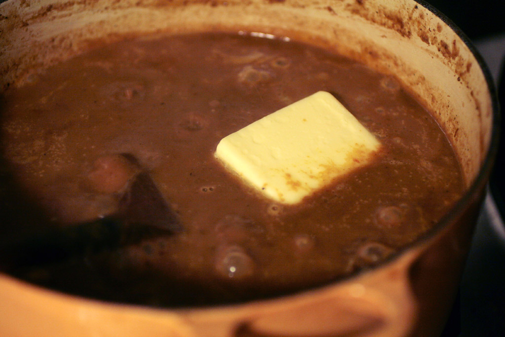軽く煮込んで、塩、胡椒で味を調え、最後にバターをひとかけで完成。