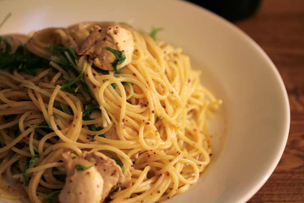 もう随分前の話だが、鍋のあと鶏肉と水菜が余って、それをパスタにしておいしかったことを思い出したのだ。