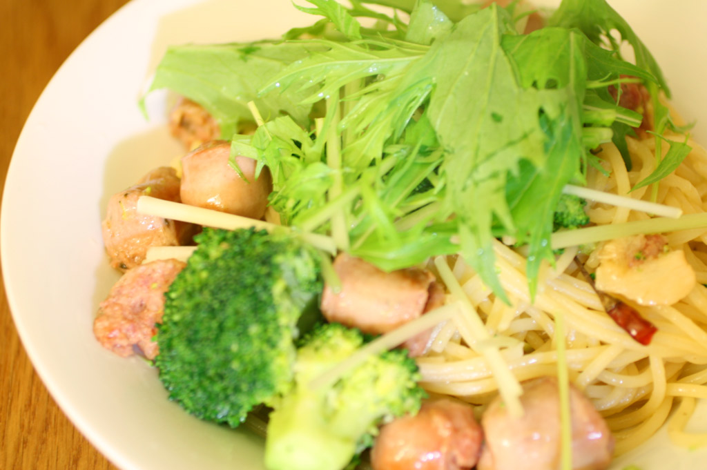ウインナソーセージとブロッコリーのぺペロンチーノ。