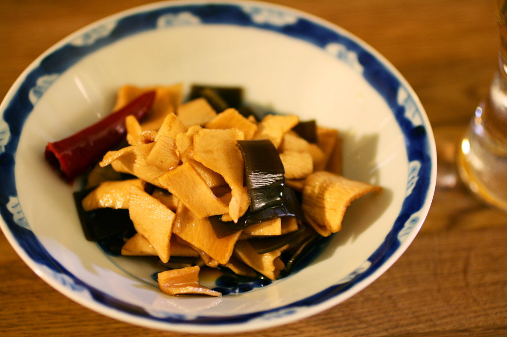 大根の皮を干したものを、昆布と酢醬油で漬けたもの。
