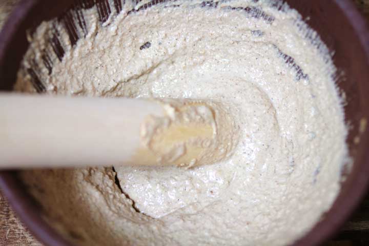 すり鉢で根気よく擂る。