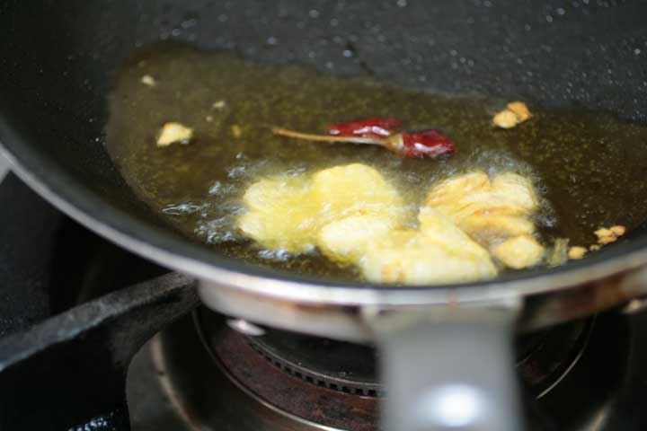 にんにくと唐辛子のオイルを作る。