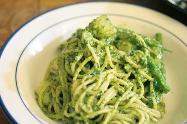 ジェノベーゼはほんとにおいしい。冷やした白ワインで。