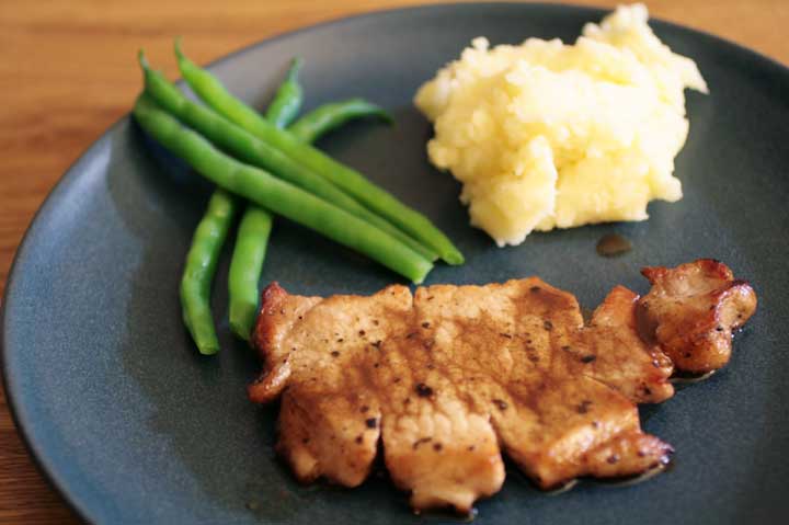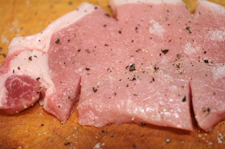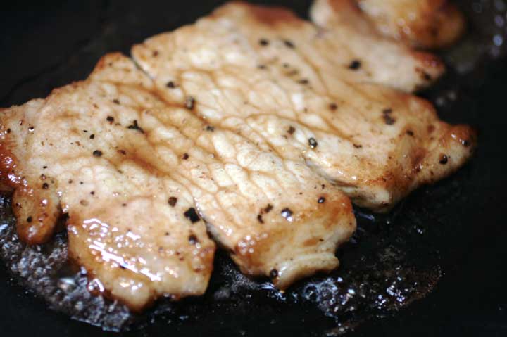 塩、胡椒をして両面を焼き、蓋をして水を入れて蒸し焼きにする。