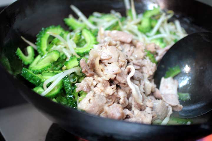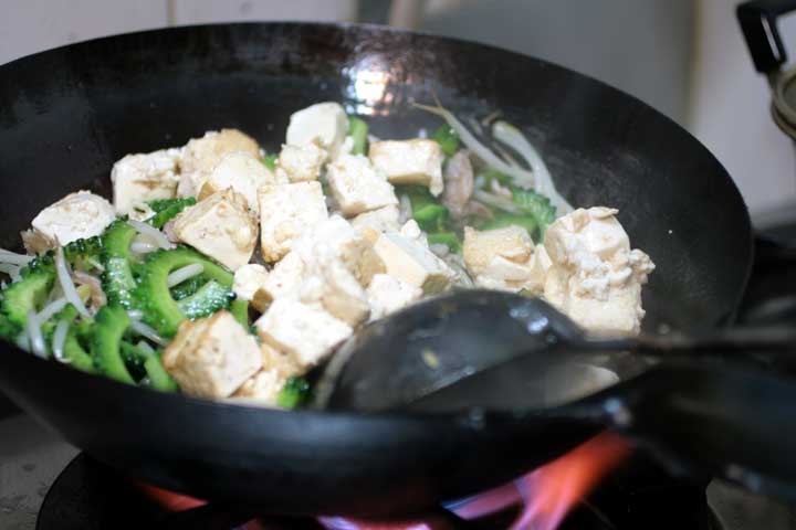 さて、セキヤ式『ゴーヤチャンプルー』の作り方。