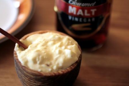タルタルソースはたまねぎとゆでたまごのみじん切りとマヨネーズと塩、胡椒を混ぜて簡単に作る。
