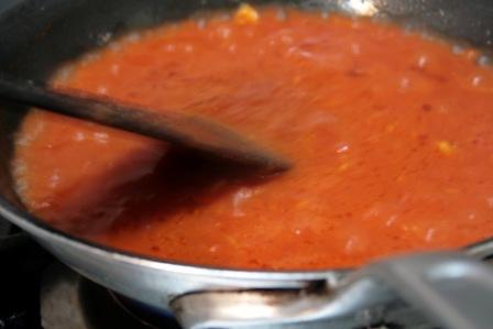 ミートソースをフライパンで温めておいて、茹で上がったスパゲティーを入れ、パルミジャーノ・レッジャーノのすりおろしを入れて、しっかり和える。